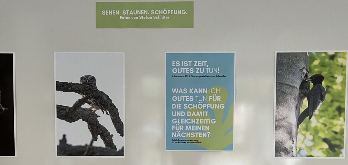 Da der Tag der Schöpfung nicht nur zum Staunen, sondern auch zum Handeln aufrufen möchte, wurden verschiedene Fakten zur Biodiversität und der Aufruf auch „für die Schöpfung Gutes zu tun“ ebenfalls ausgehängt.